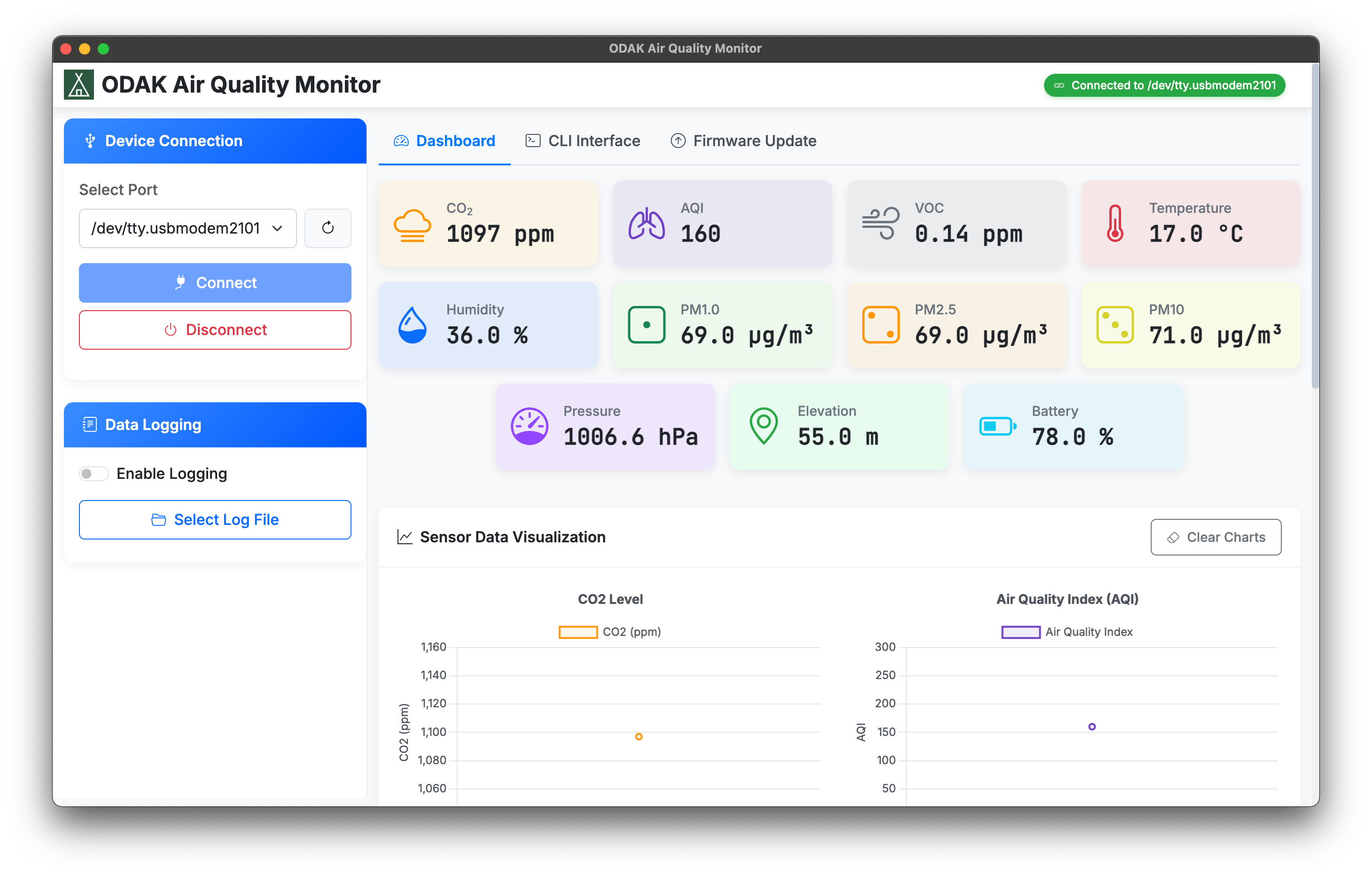 Odak Masaüstü Yazılımı'nı kullanarak Odak cihazınıza yazılım güncellemelerini yükleyebilir, verileri görselleştirebilir ve json formatında çıktı alabilirsiniz.