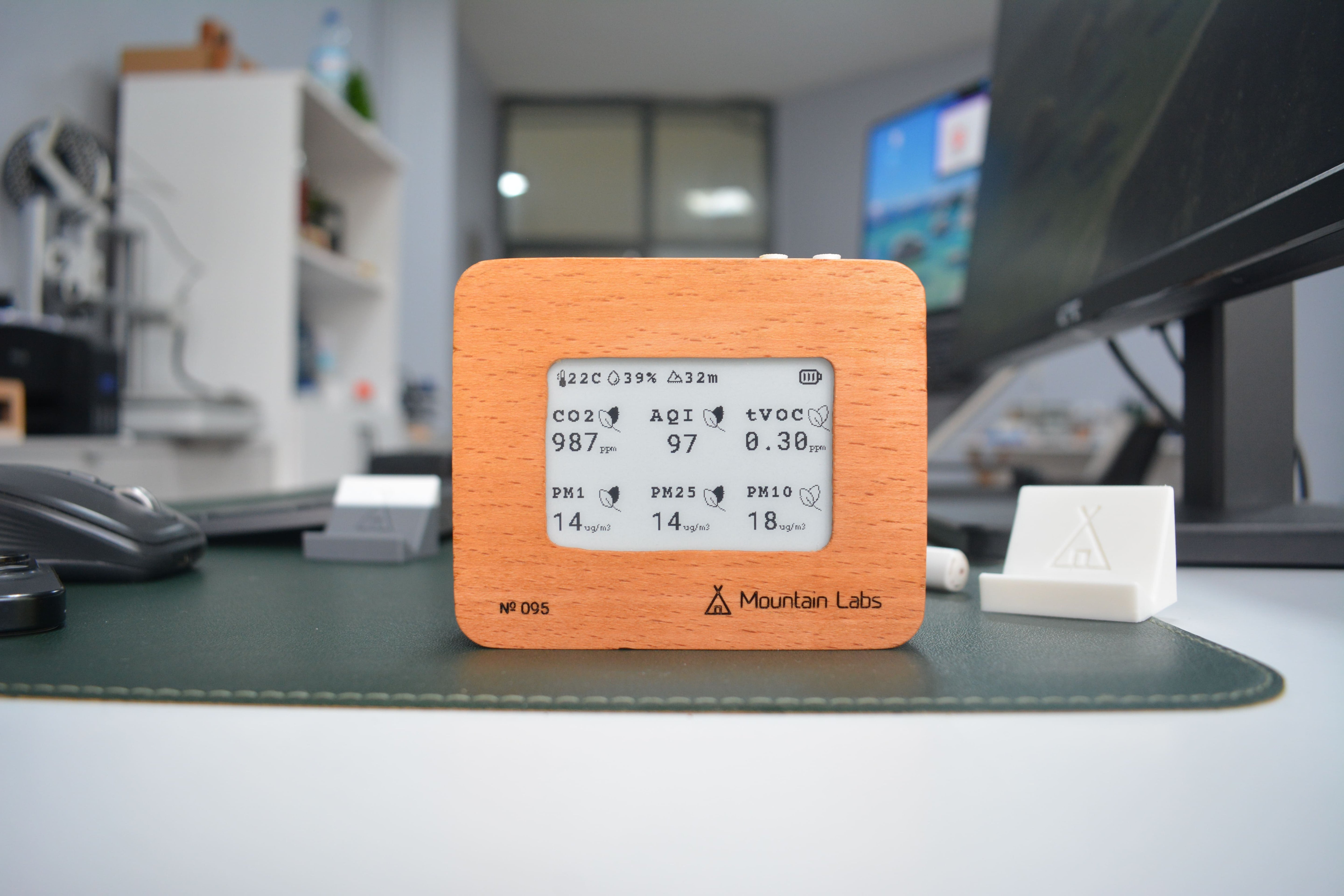 We chose beech wood because it ages beautifully, sits comfortably on a bookshelf, and doesn't look like it belongs in a server rack. An air monitor lives in your home for years. It should feel like it belongs there.